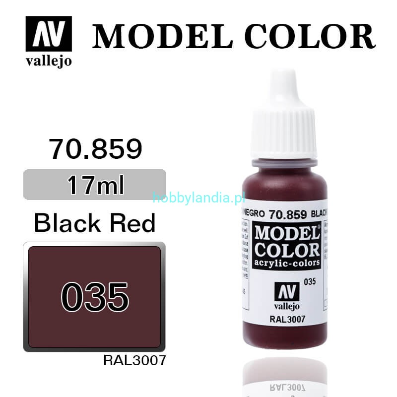 Matowa farba akrylowa Vallejo 70859 Model Color 35 Black Red / RAL 3007 (kolor ciemny wiśniowy, czerwień wpadająca w czerń).