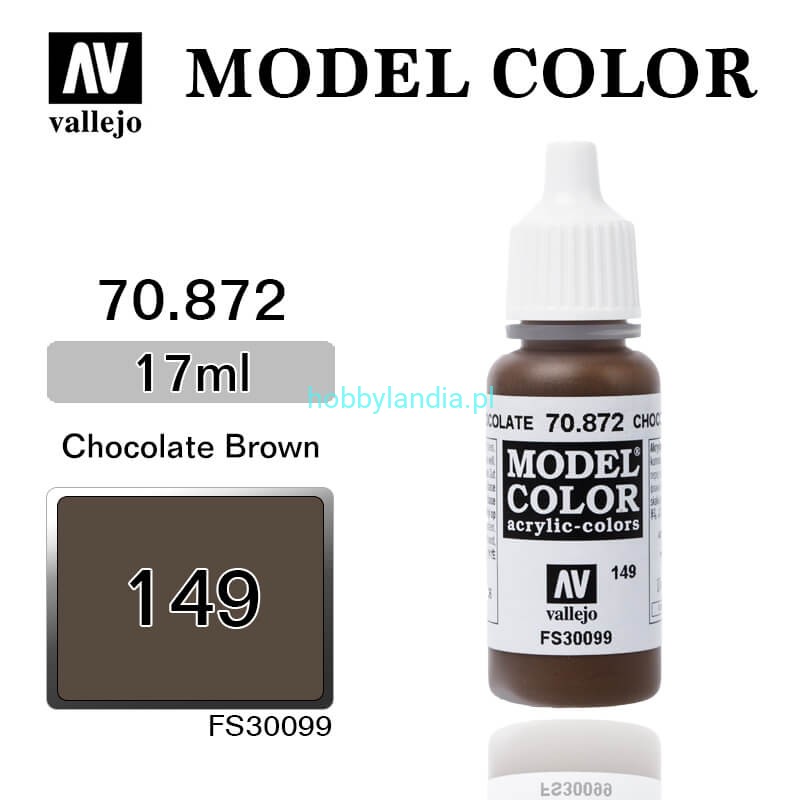 Matowa farba akrylowa Vallejo 70872 Model Color 149 Chocolate Brown (brązowy) / FS 30099.