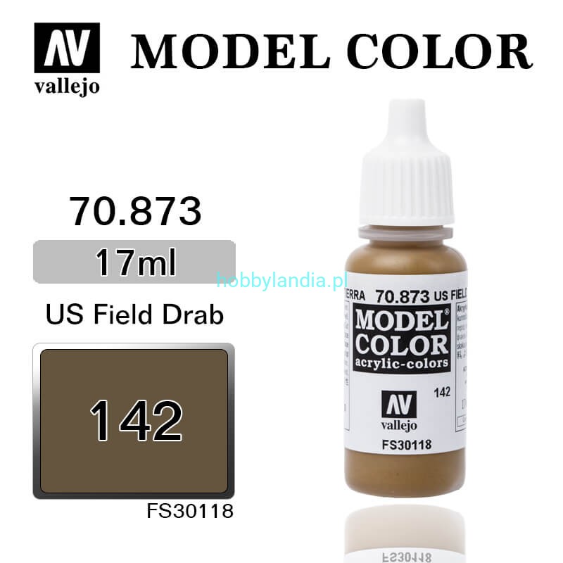 Matowa farba akrylowa Vallejo 70873 Model Color 142 US Field Drab (brunatny) / FS 30118.