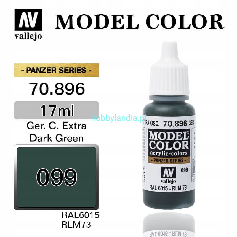 Matowa farba akrylowa Vallejo 70896 Model Color 99 German Camouflage Extra Dark Green / RAL 6012 / RLM 73 (ciemny zielony).