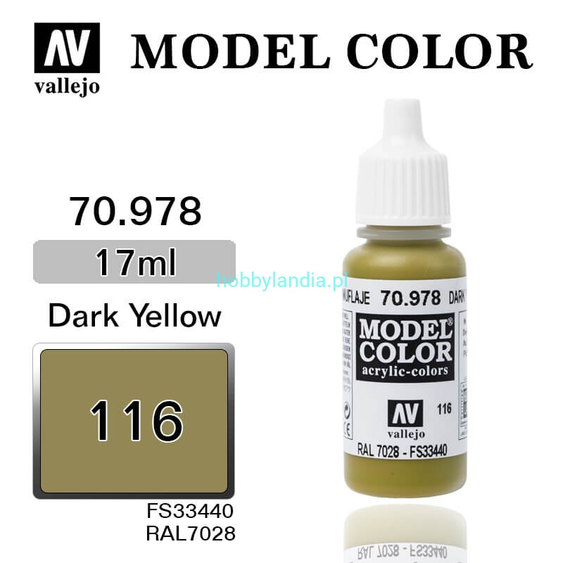Matowa farba akrylowa Vallejo 70978 Model Color 116 Dark Yellow (piaskowoszary, Dunkelgelb, Wehrmacht Olive) / RAL 7028 / FS 33440.