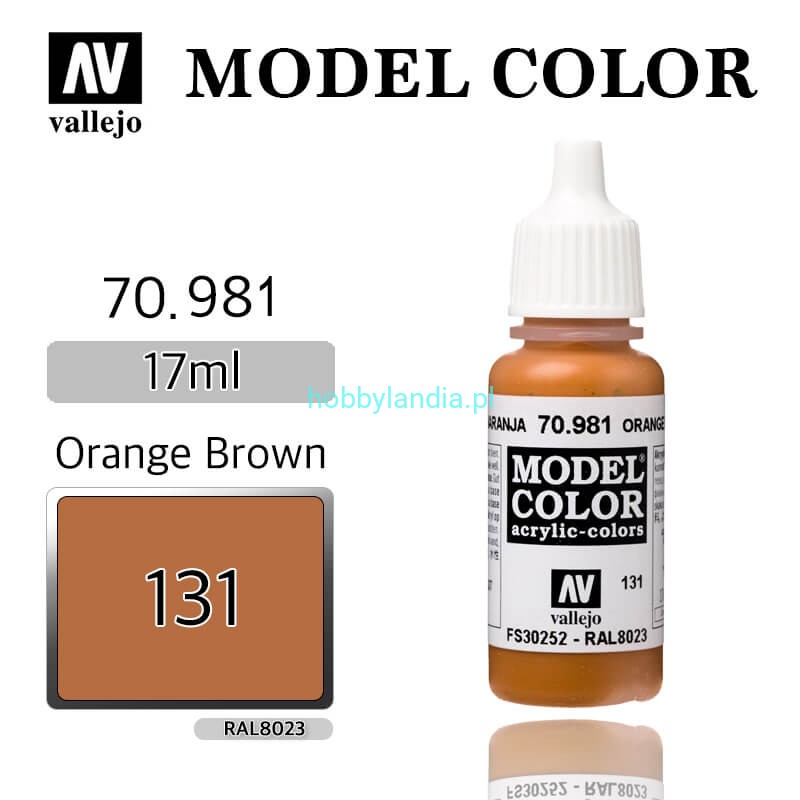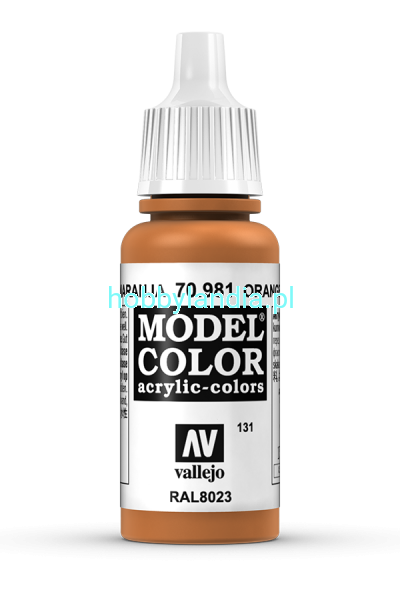 Matowa farba akrylowa Vallejo 70981 Model Color 131 Orange Brown (brązowy pomarańczowy) / RAL 8023 / FS 30252.