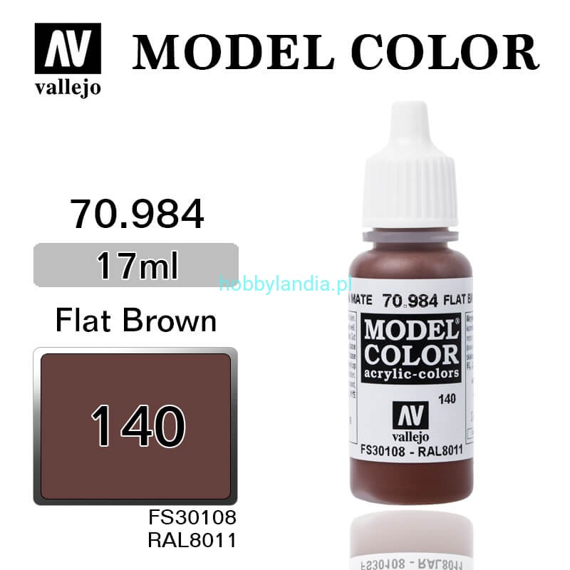 Matowa farba akrylowa Vallejo 70984 Model Color 140 Flat Brown (brązowy orzechowy) / RAL 8011 / FS 30108.
