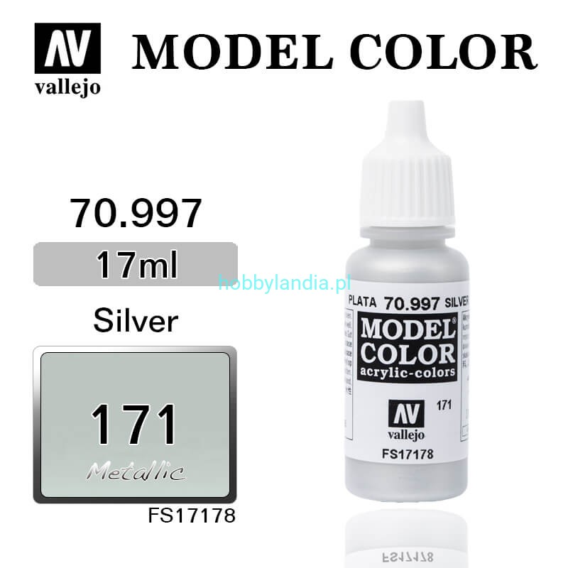Metaliczna farba akrylowa Vallejo 70997 Model Color 171 Silver Metallic (srebrny metaliczny) / FS 17178.