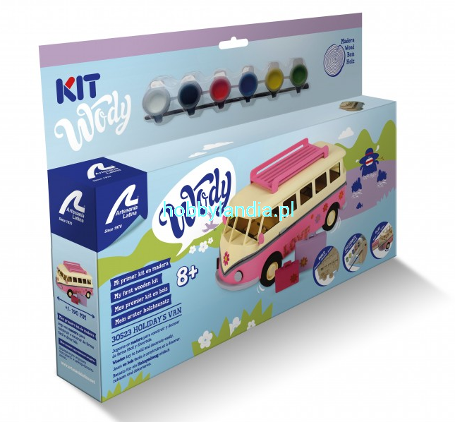 Drewniany Volkswagen Van, wakacyjny minibus do sklejania, Artesania Latina 30523.