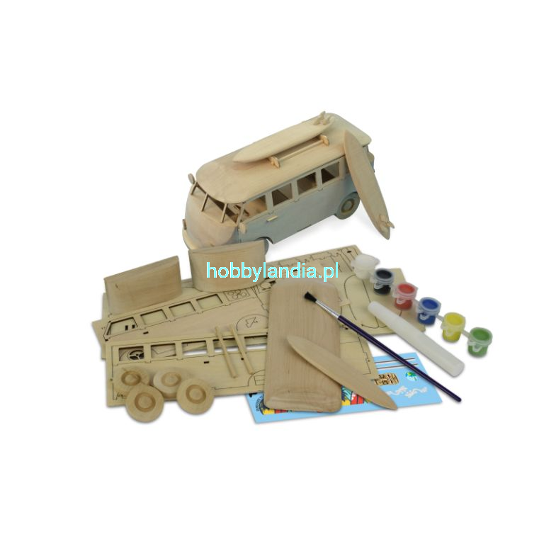 Drewniany Volkswagen Van z deską surfingową do sklejania, Artesania Latina 30522.