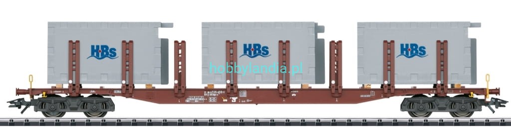 Wagon towarowy platforma Snps 719 H0 1:87 z ładunkiem, z zestawu Trix 24141.