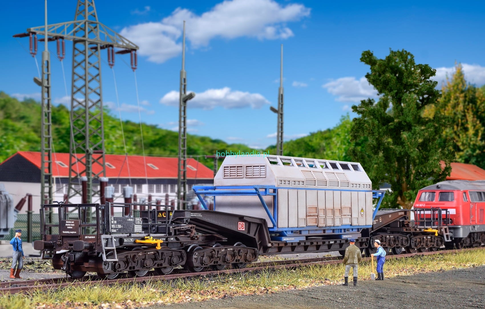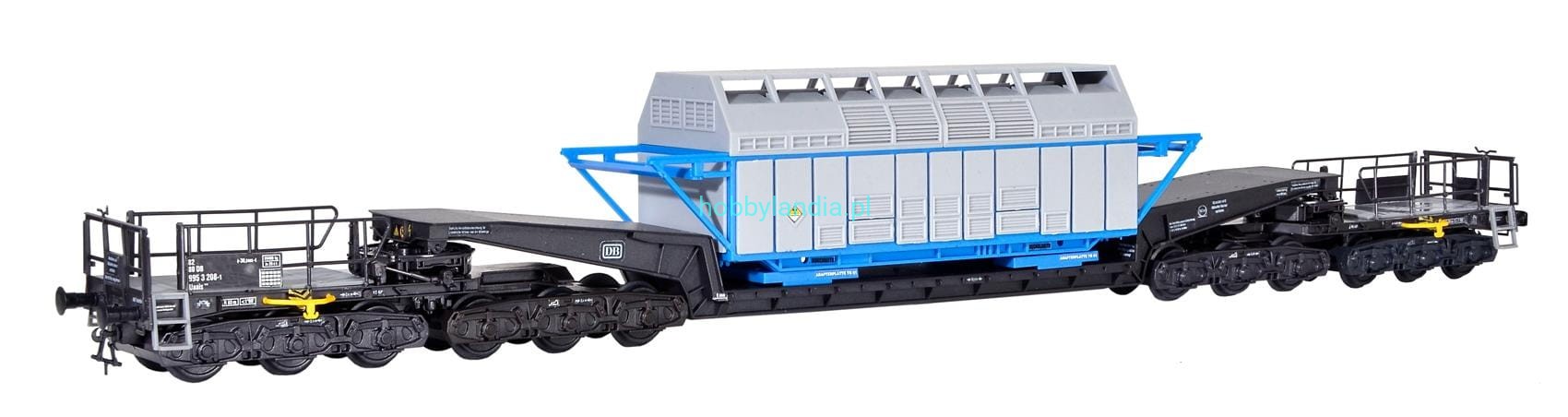 12-osiowy wagon platforma Union Uaais 819 H0 1:87 z kontenerem Castor, model do sklejania, Kibri 16504.