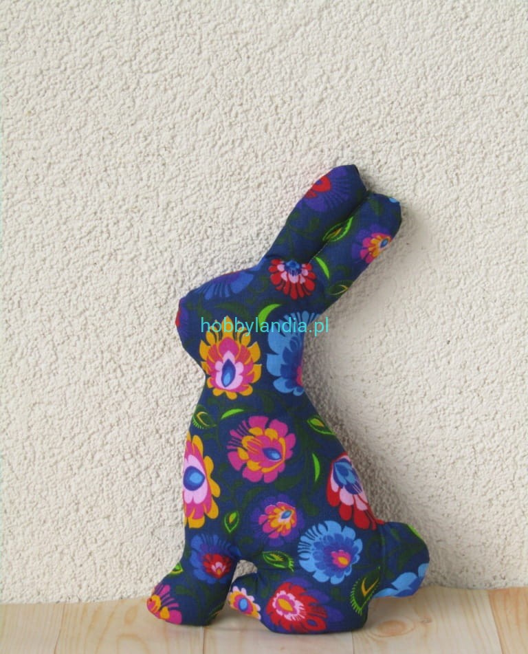 Zajączek wielkanocny wzór łowicki, ozdoba ręcznie szyta z materiału.